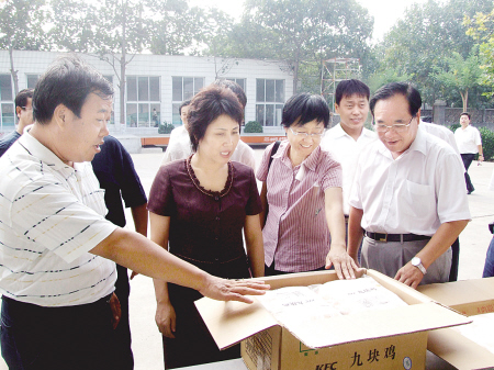 到永济。成立于1997年的山西粟海集团是一家实行“公司+农户”统贷统还,集养殖、屠宰、加工为麦当劳、肯德基、德克士快餐、超市等企业供应鸡类产品的民营企业,产品出口8个国家,今年产值可达11—12个亿。董事长朱苏海向上官书记介绍说,他是一个地地道道的农民,在近10年的企业发展过程中,一波三折,困难之大,竞争之烈,曾经使其一度产生中途罢休,有重新务农的想法,但在各级领导尤其是永济市农村信用联社的关怀和努力下,使他在这条路上坚定地走了下来。