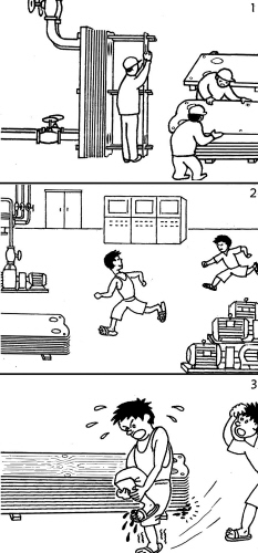 2、 企业要 加强管理,教育职工自觉遵守劳动纪律,提高自身的安全意识。(苗杰 编绘)
