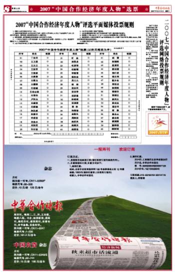 2007“中国合作经济年度人物”评选平面媒体投票规则