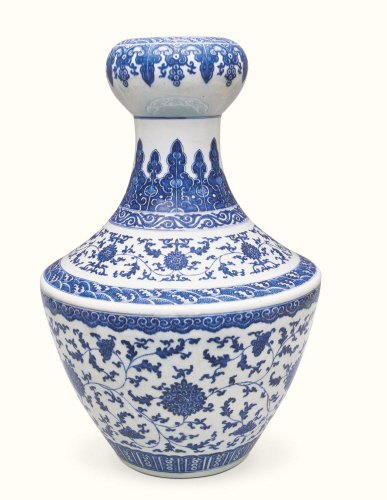 瓷器专场中,142件拍品陆续登场,引来各路买家激烈竞逐,场内气氛十分热烈。一件清乾隆青花缠枝花卉蒜头尊表现十分抢眼,拍卖师报出起价后,随即就有买家举牌竞买,此后竞价不断飙升,最终以80.64万元人民币顺利成交。此件清乾隆青花缠枝花卉蒜头尊,高55.5厘米,青花浓艳青翠,绘工精细娴熟。此器造型及纹饰极为罕见,应为乾隆朝无款之官窑上品。同场竞技的一对清康熙青花花神杯也不负重望,以44.8万元人民币被现场一位藏家竞得。