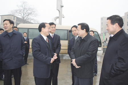 在当前全国肥料产品原料价格飞速上涨,部分农资生产企业缺乏诚信的状况下,日前,中共湖北省委书记罗清泉来到湖北祥云集团调研企业发展情况。公司董事长、总经理胡华文陪同参观并介绍了企业的发展形势和面临磷矿资源配置的困难。罗书记随即对身边工作人员说,祥云集团是全国守合同重信用企业,是全省民营改革的典范,要全力支持祥云集团的发展和建设,切实解决企业遇到的实际困难。 李文泰 摄
