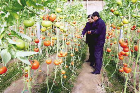 近年来,山东寿光农村合作银行根据市场需求,积极支持农民合作组织发展,支持组建了燎原果菜、绿能瓜果、农圣庄园等多家农民专业合作社。图为加入合作社的农民种植的西红柿喜获丰收。王宏伟 摄