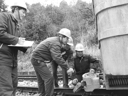 江铜集团德铜铁运处不断深化安全质量标准化创建工作,在工段中开展“班组百日安全无事故”活动。活动重点在于考核各班组在事故控制、现场检查、隐患整改、实施记录等方面是否形成闭环控制。图为该段综合组对车皮联接器插销进行隐患排查。 查 列 摄
