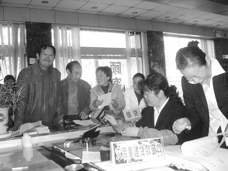 为更加有效支持灾后重建,贵州省修文县农信社设置了灾后重建贷款窗口,在各乡镇悬挂了灾后重建宣传标语并设置了信用社所在地指示牌,在各营业网点、各村张贴了《致农民朋友的一封信》,信中介绍了信用社贷款等有关情况。截至目前,全县农村信用社已发放灾后重建贷款和春耕生产贷款一千八百多万元。图为信用社发放灾后重建和春耕备耕贷款情景。 段 纲 摄