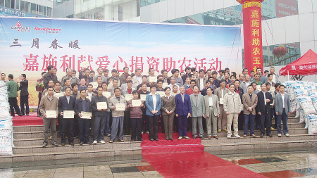农业的发展是社会进步根基,根系深则花果繁,仓廪实,社会兴。农业遭受严重的损失将对国家经济发展和农民生产生活均造成严重的影响,作为一个农资生产企业,新都化工主动承担作为企业的社会责任,不仅为广大农民朋友提供优质高效的复合肥产品,还时刻关注农民朋友的生产生活问题。2007年,新都化工在广西、四川等省举办 “爱心托起希望--嘉施利阳光助学活动”,当时曾在玉林市资助100多名农村贫困孩子,帮助他们继续求学之路,此次助农活动是新都化工在玉林展开的第二次以“关注三农”为主题的大型公益活动。