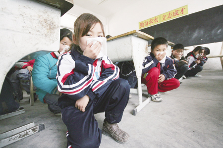 3月31日是第13个“全国中小学安全教育日”活动。今年安全教育的主题是“迎人文奥运,建和谐校园”。为切实保障广大学生的安全,预防各类安全事故的发生,各地开展了消防知识、交通安全及食品安全等教育活动。图为浙江省台州市的消防官兵为东门民工子弟学校的学生开展火灾逃生安全知识教育。(相关报道请见四版) 中新社传真 弓长成 摄 (cnsphoto 供图)