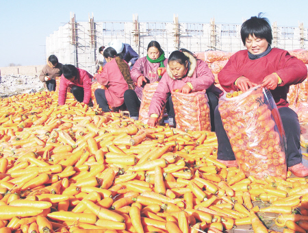 今年,受国内外经济形势影响,胡萝卜价格走低,但该县因引进日本红映等新品种,推行垄沟种植等新技术,胡萝卜品质好,营养高,亩产达7000至10000斤,销路良好,菜农收益较往年未受明显影响。