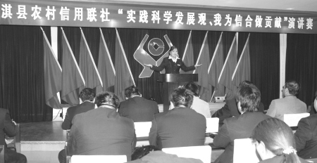 十二月三日,河南省淇县联社举办了一场主题为“实践科学发展观 我为信合做贡献”的演讲比赛。参赛选手用深刻的说理和真实的事例展现了淇县联社员工团结一心、奋发图强的形象,充分展示了淇县信合人爱岗敬业、开拓创新、乐于奉献的精神风貌。
