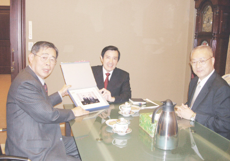 近日,天仁、天福集团总裁李瑞河,在台北应邀拜会马英九。李瑞河汇报了到大陆投资16年,天福事业顺利发展的情况,并表示:“最近台湾农委会对茶业的管制有所放松,这样有利于两岸的交流。”谈到鼓励台商回流,计划设立台商专区时,李瑞河深表赞成。他说,天福准备在专区内设厂,把大陆三山五岳的茶运到加工区来,进行加工包装,贴上天仁的牌子,行销世界各地。”严利人 摄