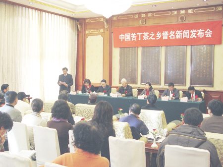 本报讯(记者 张永立)12月20日,中国苦丁茶之乡誉名新闻发布会在北京召开,拥有全国最大苦丁茶基地的四川筠连县,正式被全国高科技食品产业化委员会誉名为“中国苦丁茶之乡”。国务院扶贫领导小组杨贵出席新闻发布会,筠连县王萍县长介绍了该县苦丁茶的特点、现状和发展规划。
