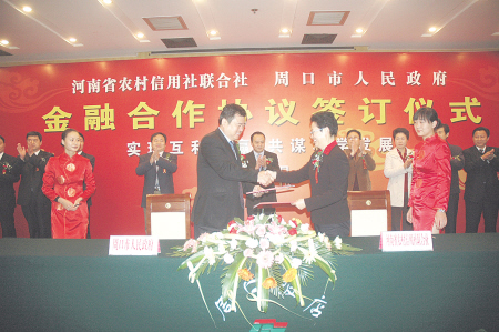 在协议签订仪式上,杨玲指出,金融合作协议的签订,正式启动了省农信联社和地方政府的战略合作,是支持区域经济发展的新尝试,是增进双方了解、合作与相互支持的新举措,将对推进全省区域经济发展起到积极作用。农信社将通过与周口市政府的合作,大力支持周口县域支柱产业、农业产业化龙头企业、中小企业和经济结构调整,为周口市经济社会发展提供长期、优质、高效的金融服务和信贷支持。 (河南省联社办公室)