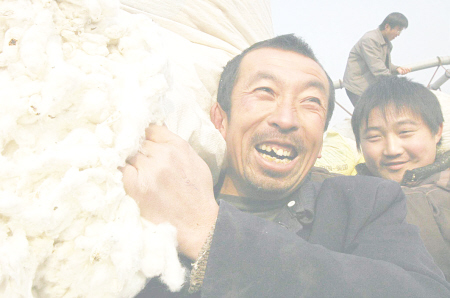2007年我国中央财政划拨5亿元,对全国近4000万亩棉田种植进行补贴,连续补贴2年。以县为单位组织实施,每县确定5个优良品种,做到一村一种。其中,黄河流域棉区补贴面积1603万亩、长江流域棉区670万亩、西北内陆棉区1060万亩。据了解,2009年棉花良种补贴的范围还将进一步扩大。此为中央出台的首个支持棉花生产的补贴政策,有效减轻了棉农植棉的成本压力,增加了棉农收入。闻听此信,很多棉农像山东省阳谷县阿城镇棉农纪振青一样,喜笑颜开。 中新社发 肖明磊 摄
