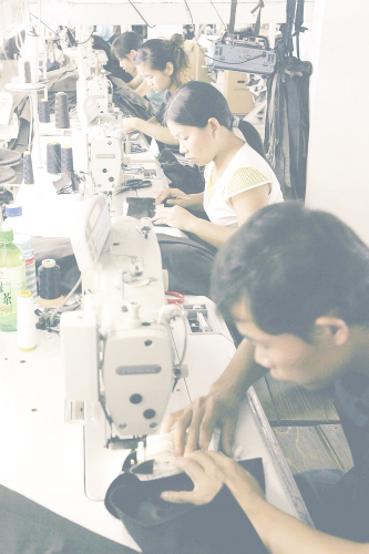 有服装生产企业1000多家、日产裤子60多万条、自称是“世界裤都”的广西玉林市福绵区,从上世纪70年代末开始,长期为广东等地加工贴牌牛仔裤赚取微利。现如今,一些有志向的企业主开始打造自己的服装品牌,期望获得更大的利润。11月初,当地一家制衣企业工人生产自创的帝皇牌裤子。 中新社发 王丽南 摄 ( cnsphoto)