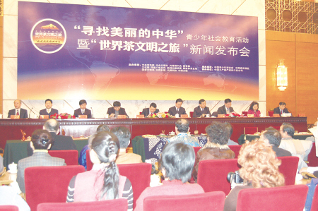 2月22日,全国“寻找美丽的中华”青少年社会教育活动组委会办公室在北京人民大会堂举行新闻发布会,宣布“世界茶文明之旅”、“走读大运河”、“2008中国青年喜爱的旅游目的地评选”等一系列以开展青少年社会教育、弘扬中华文化为宗旨的活动子项目正式启动。