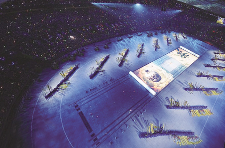 2008年8月8日晚8时,举世瞩目的第29届奥运会在北京国家体育场隆重开幕。当场地上巨大的卷轴慢慢拉开时,世人无不为之震撼。这幅147米长、27米宽的巨大LED屏幕,是展现中国5000年历史的长卷。随着画卷的徐徐展开,代表中国古老文明的造纸、印刷、火药、指南针、陶瓷等次第映入人们的眼帘,其中尤其令人欣喜的是,巨幅“茶”字也长时间地出现在画卷中,给全世界观众留下了深刻的印象。