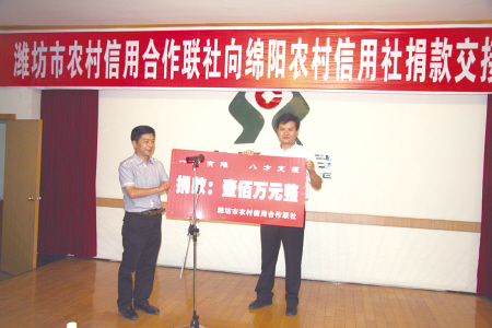 山东省潍坊市农村信用联社为灾区信用社捐款。