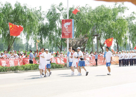 山西省平遥县农村信用联社理事长薛建华参加奥运火炬传递。