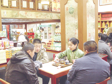 另一方面,坐在店铺中喝茶的老友聚会明显减少,商铺里等客上门的店员也不多见了。主销日照绿茶的卢立天告诉记者,“大家都外出主攻礼品茶市场了,留在家里的都是为数不多的看守店员。大家都忙着打包发货,唠嗑侃大山的人降低了很多。”