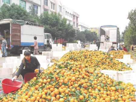 2008年12月10日一大早,福建省建瓯市柑橘流通大户王才仁又将满载着15吨蜜橘的货车发往福州沃尔玛超市。王才仁兴奋地说:“从本月8号开始,沃尔玛超市就给我不断下来订单,要求我每天要运15吨蜜橘到超市销售。”蜜橘进入大型超市,这是建瓯市积极应对蜜橘“卖难”,创出的一条新路子。