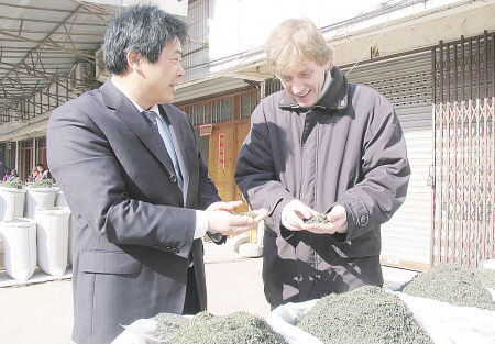 1月10日,来自俄罗斯的客人——莫斯科茶人俱乐部总经理穆斯基斯拉夫斯基·谢尔盖·巴黎索维奇先生,来到有“江南第一茶市”美誉的芜湖市三山区峨桥茶叶批发市场参观。谢尔盖先生毕业于莫斯科大学中文系,是名“中国通”。他很喜欢中国茶叶,一直致力于中国茶文化的传播。去年,他曾经到中国参与拍摄大型纪录片《中国茶乡行》,让更多的俄罗斯人了解了中国茶叶,加深了俄罗斯人对中国茶文化的了解,加强了两国间的茶叶贸易。
