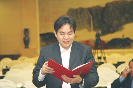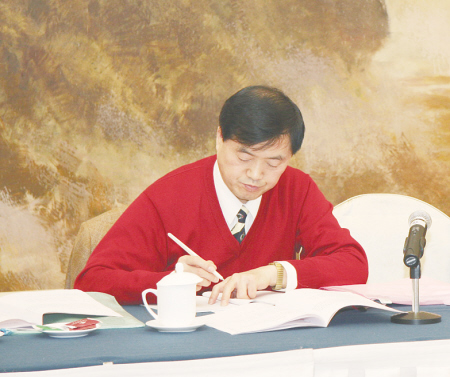 与会代表们全神贯注地阅读会议报告和相关材料。