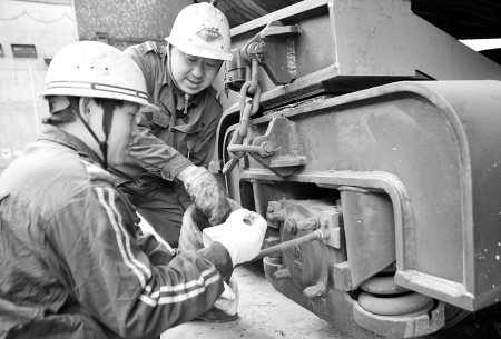 河北钢铁集团唐钢股份运输部特种车辆检修车间多年来,随着铁水运输车辆的逐渐增多,该车间职工不断加强检修知识的学习,发挥现有技术资源优势,开展科技攻关活动,取得了较好效果。去年以来,共完成检修鱼雷混铁车52辆,超额完成检修计划3辆,荣获河北省优秀科技质量成果奖,为公司铁水安全运输提供了良好的设备保障。图为该车间检修职工正在组装检修好的鱼雷混铁车辆。