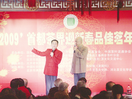 1月13日,来自北京、天津、河北和从美国远道而来的茶人近300位齐聚老舍茶馆,参加第六届“首都茶界迎新春茶话会”。在欣赏精彩文艺节目的同时,各界茶人辞旧迎新,同祝新年,展望未来,共谋发展。
