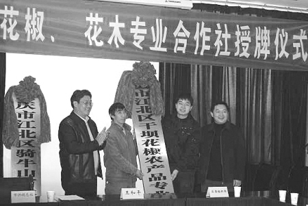 在两位“村官”的不懈努力下,干坝村顺利申请注册登记了“重庆市江北区干坝村花椒农产品专业合作社”和“重庆市江北区骑牛山花木专业合作社”。在专业合作社实际运作过程中,两位“村官”充分利用自己年轻果敢、勇于创新的优势,不断为专业社经营发展出谋划策。通过一系列的调查研究,他们发现原本是花椒生产中的废料——椒籽,也可以作为生产高档蔬菜芽苗菜的辅料。为此,他们专程赶赴江北区碧云沟菌菇专业合作社进行考察,本着“走出去、请进来”的精神,与区域外的专业合作社优势互补、互通有无、变废为宝。现在双方已经达成初步合作意向,一旦建立了合作关系,将为专业合作社入社农户们带来一笔可观的收入。
