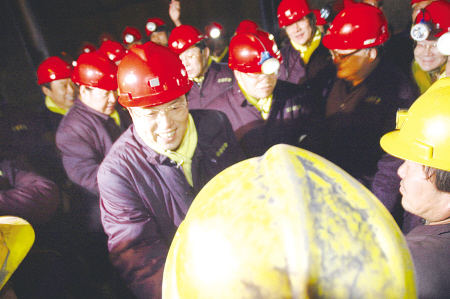 1月19日下午,中共中央政治局委员、国务院副总理、国务院安全生产委员会主任张德江在国家安监总局局长、党组书记骆琳等人陪同下,深入到安徽淮南矿业集团顾桥矿的井下现场慰问生产一线矿工。