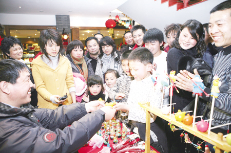 抖空竹、捏泥人、制作鼻烟壶这些老北京传统民俗艺人的绝活都被搬进了茶庄,近日,张一元北京市百家连锁店推出了“2009新春民俗风情节”。