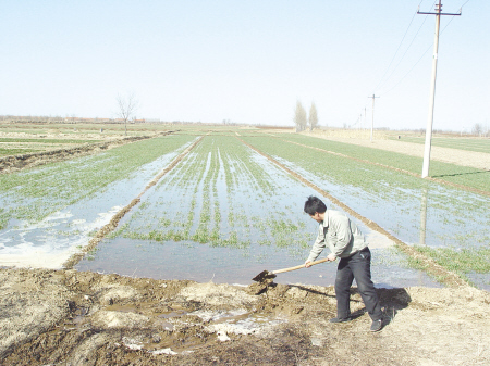 立春时节,山东阳信县商店镇农民积极抗旱浇麦,确保今年夏粮有个好收成。去冬以来,该县出现了严重旱情,为保证小麦丰产丰收,春节过后,该县就动员农民不等不靠,利用现有的沟河水源和机井浇灌小麦。