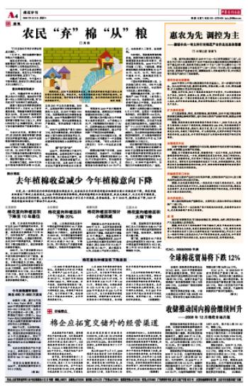 部分棉区:去年植棉收益减少 今年植棉意向下降