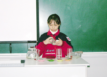 进了茶艺队以后,我开始跟着老师学习茶艺。一开始,我也担心热水会烫到手,一时学不会那么多的冲泡技巧。但是,看着老师信任的目光,看着周围其他队员的努力,我慢慢地开始了刻苦的训练。在老师的耐心教导下,我不仅知道了一些茶艺冲泡的基本方法、学会了一些基本技能,而且由于我善于思考,随着我的冲泡技术不断进步,渐渐成为队里的佼佼者。并在上海市学生艺术单项比赛中荣获中学组银奖。