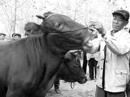 图为全国百家专业市场之一的东海县大牲畜市场牛市肉牛交易火爆时的场景。