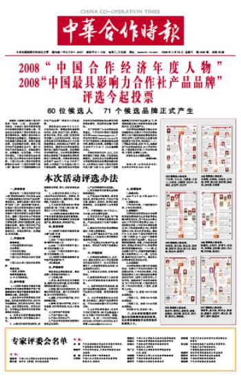 2008“中国合作经济年度人物” 2008“中国最具影响力合作社产品品牌”评选今起投票