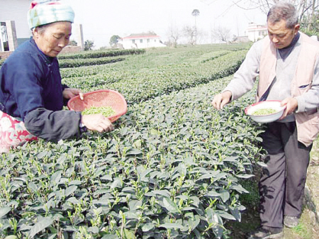 由于气温回升快,从四川洪雅县平坝区到丘陵区,全县14.5万亩绿色无公害生态茶园,随着清新的春风冒出了绿嫩的新芽,大部分茶农开始今年的早春第一期茶叶采摘。夏 蓉 摄