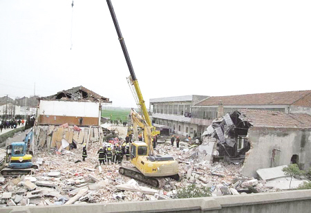 3月11日1时45分,江苏镇江市丹阳市吕城镇惠济村,中铁24局沪宁城际铁路工地施工人员租住的房屋发生爆炸,造成房屋坍塌,共造成11人死亡,另有20人受伤。