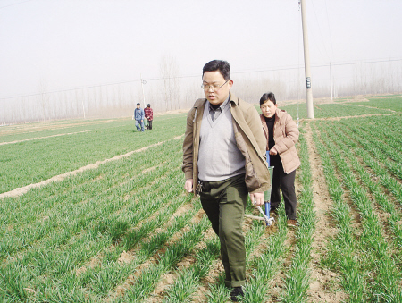 3月15日,山东省梁山县马营乡党委政府抓住春季麦田管理的大好时机,及时指导农民追施返青肥,确保小麦丰产丰收。图为薛屯村农民追施化肥。 杨玉建 摄