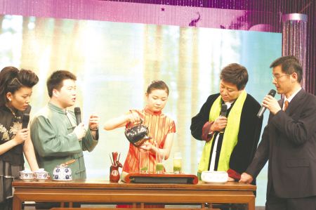 3月17日-18日,北京中国农业电影电视中心内飘着阵阵茶香,演播室里不时传出悠扬的古琴声。“清明问茶”系列节目正在紧张地录制中,来自五地茶乡的政府领导、茶文化专家、地方行业协会负责人在茶园最忙的时候,赶到北京,带来了珍贵的新采明前绿茶。并在戏说名茶茶史和民间传说的同时,向观众普及相关茶叶知识。