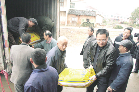 为了服务春耕市场,近期,湖北祥云(集团)化工股份有限公司派出农化人员深入田间地头,传播栽培种植技术,手把手指导农民施肥、鉴别真假肥料。图为湖北祥云公司在用肥季节免费送肥下乡。 李文泰 摄