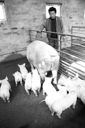 北京大兴区榆垡镇王家屯村养猪合作社的社员王振辉,从1997年起开始养猪,十多年的养猪经历使他兴奋不已,“我原来是个体养猪,最多时也就十几头,但是从加入合作社后发生了很大变化,存栏量最多时达到400余头,年收入近20万元。现在我每天都没工夫出村。”给王振辉感触最深的是,合作社使他们掌握了防疫、管理、配料等饲养知识,他自豪地说:“我们现在都可以称得上‘乡土专家’了。”图为王振辉正在观察猪的生长情况。