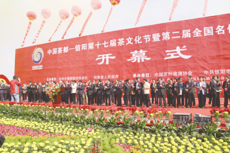 惠风和煦,茶叶飘香。4月28日-30日,中国茶都-信阳第十七届茶文化节暨第二届全国名优茶博览会在河南信阳羊山新区隆重举行。全国政协原副主席张思卿,中华全国供销合作总社党组成员、理事会副主任赵显人,河南省委常委、宣传部长、副省长孔玉芳,信阳市委书记王铁,中国茶叶流通协会常务副会长王庆,中国国际茶文化研究会副会长梁朝清等出席开幕式。