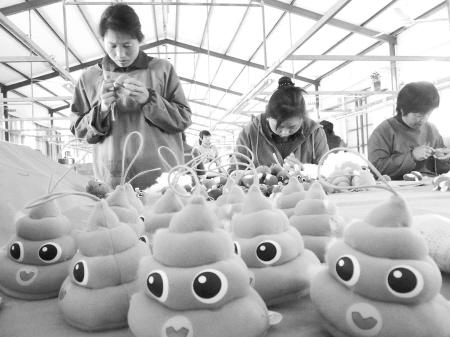 为了减轻国际金融经济危机的影响,江苏省东海县按照“家门口企业,家门口就业”的工作指导思想,积极与本县企业进行“联姻”,广泛拓宽返乡农民工就业渠道,返乡农民工经过短期劳动职业技能培训后,就在家门口企业实现了就业。截止到目前,东海县已有近50万返乡农民工在家门口完成了就业。图为东海县返乡农民工正在工艺品企业加工出口国外布玩具。