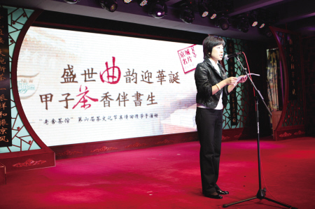 一台由老舍茶馆演员和高校学子共同参与的演出,为整个活动掀起了高潮。老舍茶馆的皮影戏表演、长嘴壶茶艺、传统节目双簧、川剧变脸,以及北京大学的“太极剑”,北京工业大学的相声“黄鹤楼”,北大、农大和人大联合表演的“绿、黄、白茶”茶艺,北京科技大学与中国农大联合展示的“黑、红茶”茶艺,精彩纷呈,掌声不断。