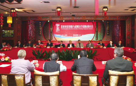 4月26日,作为2009′马连道国际茶文化节系列活动之一的“茶业科技创新与战略合作国际研讨会”在老舍茶馆举行。北京宣武区副区长范宝出席并主持活动。北京市投资促进局副局长王红专、宣武区长助理谢全林、中国茶叶流通协会秘书长吴锡端与来自中国、俄罗斯、哈萨克斯坦、印尼、泰国、蒙古、巴基斯坦等国的知名专家,国内茶叶协会和优秀茶企业代表及茶产区领导共计60余人参加研讨会。与会嘉宾围绕茶叶种植、加工、物流、销售等环节的科技创新、培育国际品牌、共同开拓国际市场、贸易对接等相关议题进行深度研讨,交流意见,以促进和推动中国茶业经济的不断发展。