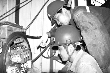由于磁力馈电开关技术含量低,已被有关部门划为淘汰设备,山东丰源煤电股份有限公司赵坡煤矿购进了一百五十三台矿用隔爆型真空开关用于淘汰井下及井上所有的磁力馈电开关,确保安全生产。图为该矿工作人员正在调试更换后的真空开关。 任伟 摄