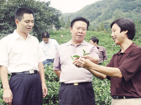 罗雪剑:主要是建立奖励机制,采取得力措施推进,工作要创新。通过制定“茶上人上,茶下人下”的茶叶产业发展末位淘汰制的用人政策,年终奖励工资与茶叶产业挂钩的奖罚措施,激励起了全县干部抓茶叶产业发展、领导干部思茶叶产业发展、茶农盼茶叶产业发展的良好局面。县上已把茶叶产业发展列为对25个乡镇和县级部门包抓产业年终工作考评的重要项目和内容,县委成立了督导考评组,县级领导成员和部门都要包抓乡镇,对此进行严格督查和考评,实行重奖重罚,每年拿出近百万元资金对茶产业发展进行表彰奖励。几年来,因推进发展茶叶有突出表现的25名乡镇干部,均已以正副科级得到了重用和提拔,不力的3名进行降职使用,极大地调动起了乡镇干部抓好茶叶产业的积极性和责任心,使紫阳县茶产业成为陕南突破发展支持重点和示范的典型。