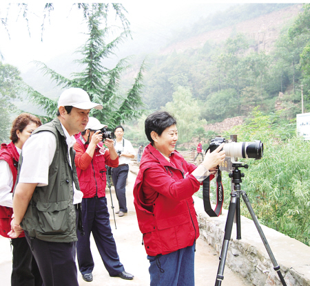 河南省农村信用社注重企业文化建设,于日前成立了河南省摄影家协会农信摄影分会和中国金融摄影家协会河南省农信分会,并积极组织会员开展采风活动。图为省联社党委书记、理事长杨玲(右一)正在采风。杨清禄 摄