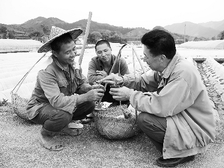图为该镇农技人员在归宗村精心指导农民分选瓜苗。魏剑生 摄