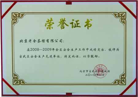 老舍茶馆被《北京月讯》杂志社授予民俗文化突出贡献奖。